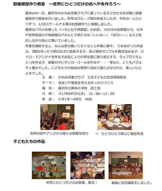 夏休みの一日、藤沢市のかもめ児童クラブに通っている子どもたちを対象に部屋模型作り教室を行いました。