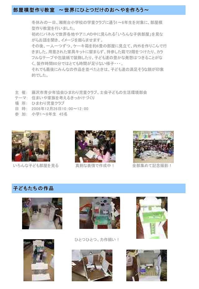 冬休みの一日、湘南台小学校の学童クラブに通う1~6年生を対象に、部屋模型作り教室を行いました。