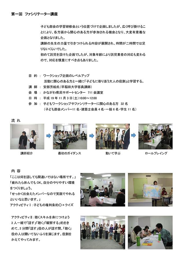 子どもたちを対象に活動を行うファシリテーターとして必要なことを学ぶための子ども部会の学習研修会という位置づけで企画しましたが、広く呼びかけることにより、各方面から関心のある方が参加される機会となり、大変有意義な企画となりました。