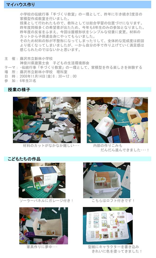 小学校の伝統行事「手作り教室」の一環として、昨年に引き続き2度目の家模型作成教室を行いました。