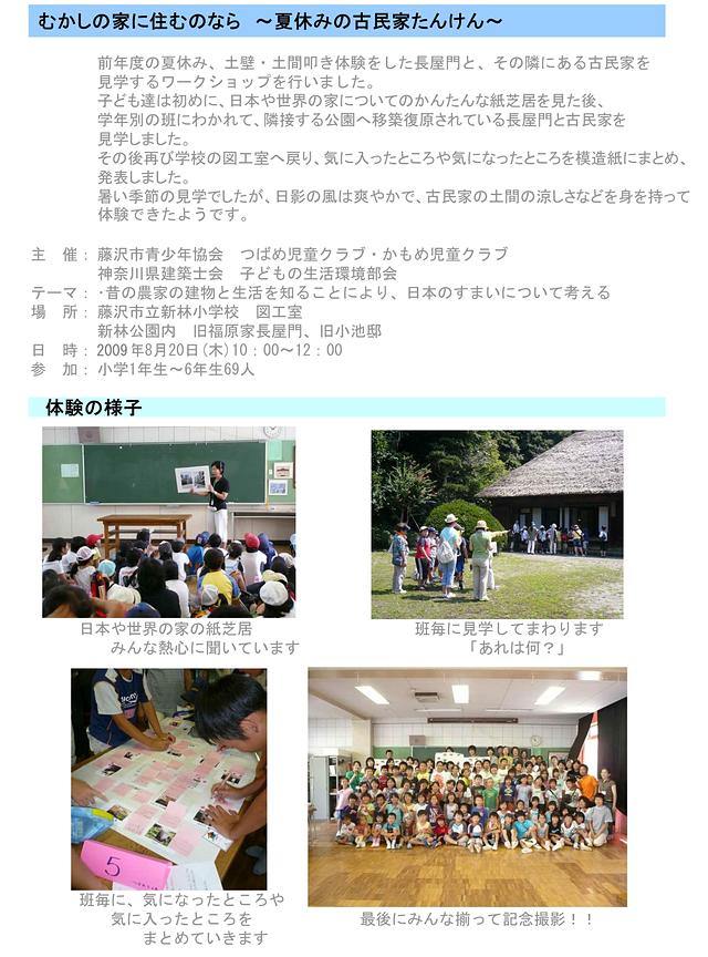前年度の夏休み、土壁・土間叩き体験をした長屋門と、その隣にある古民家を見学するワークショップを行いました。
