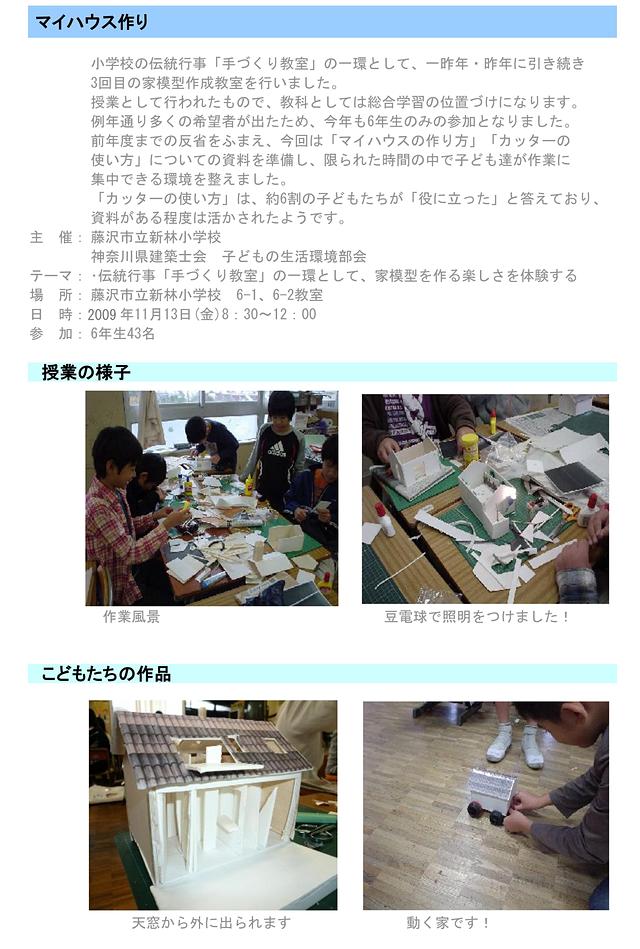 小学校の伝統行事「手づくり教室」の一環として、一昨年・昨年に引き続き、3回目の家模型作成教室を行いました。