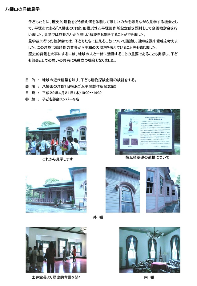 平塚にある八幡山の洋館(旧横浜ゴム平塚製造所記念館)の見学をしました。