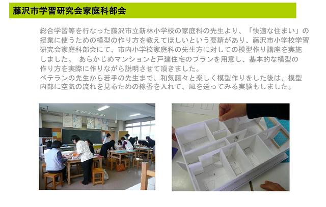 総合学習等を行った藤沢市立新林小学校の家庭科の先生より、「快適な住まい」の授業に使うための模型の作り方を教えてほしいという要請があり、藤沢市小学校学習研究会家庭科部会にて、市内小学校家庭科の先生方に対しての模型作り講座を実施しました。
