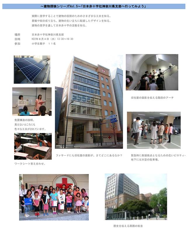 昔の建物のイメージを残しつつ、免震装置等最新技術を備えて建てなおされた日本赤十字社神奈川県支部の建物探検ワークショップを行いました。