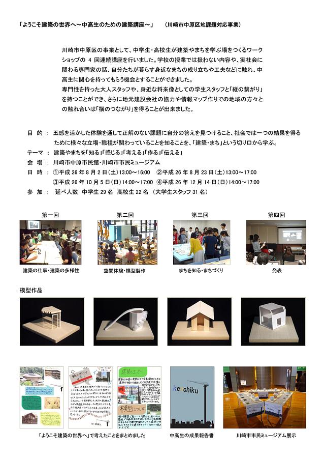 中学生・高校生を対象に、建築や街を「知る」「感じる」「考える」「作る」「伝える」ことを目的に、全4回のワークショップを行いました。