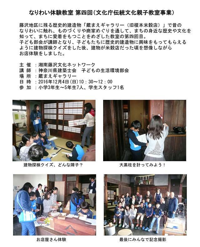 藤沢地区に残る歴史的建造物「蔵まえギャラリー(旧榎本米穀店)」にて開催された全4回のなりわい体験教室の第4回目の講師を務めました。建物探検後、かつてお米屋さんだったことを想像しながらお店体験をしました。