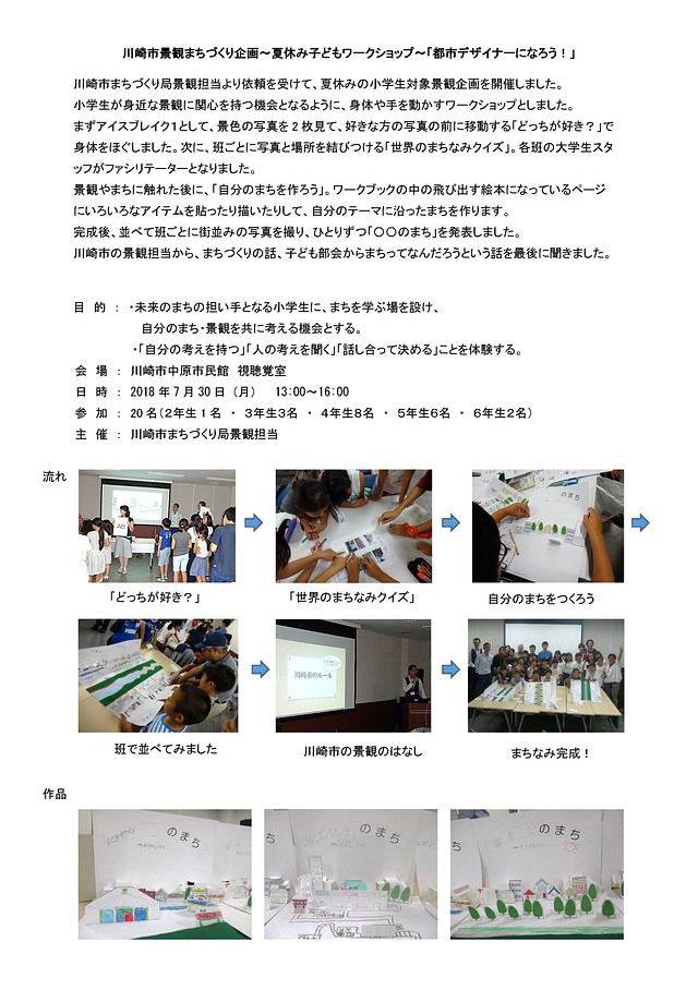 川崎市まちづくり局景観担当より依頼を受けて、夏休みに小学生対象の景観企画を開催しました。