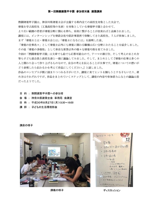今年度初めて開催された県内全ての高校生を対象とした「熱闘建築甲子園」参加者を対象に、建築講座を行いました。